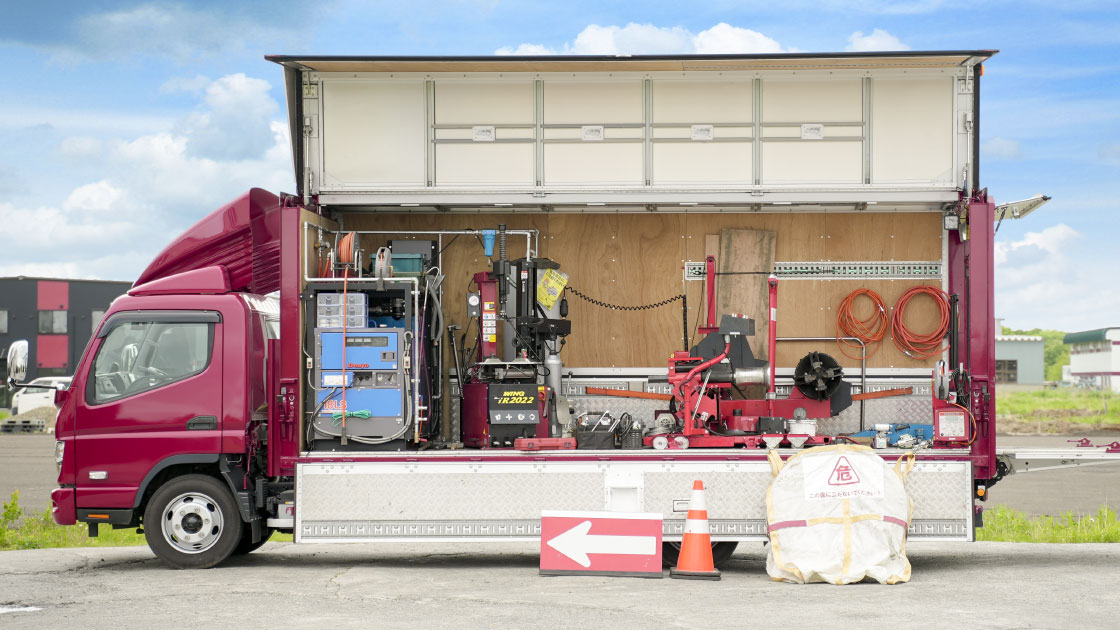 ▲路上トラブル時、現地での作業